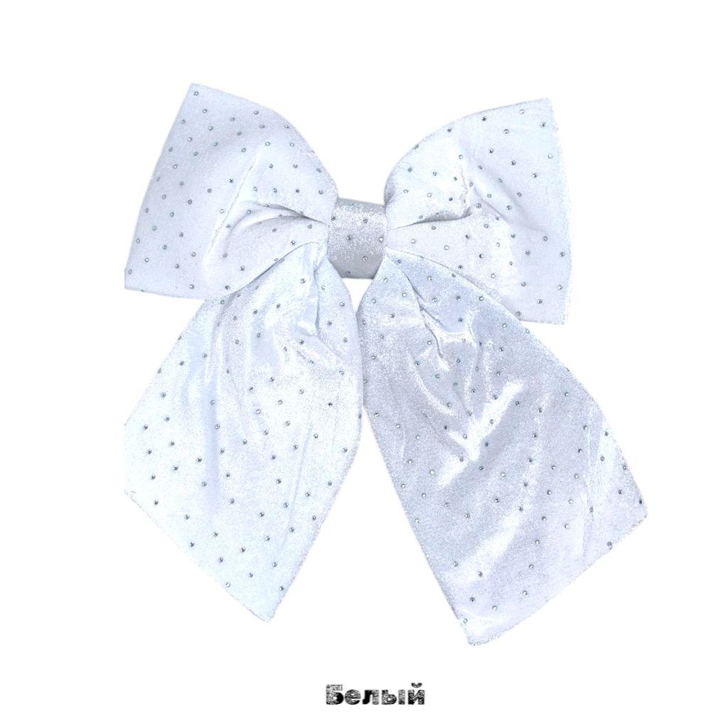 Бант Новогодний со стразами 30 х 38 см, велюр, белый, FA39-20, описание, фото о товаре.