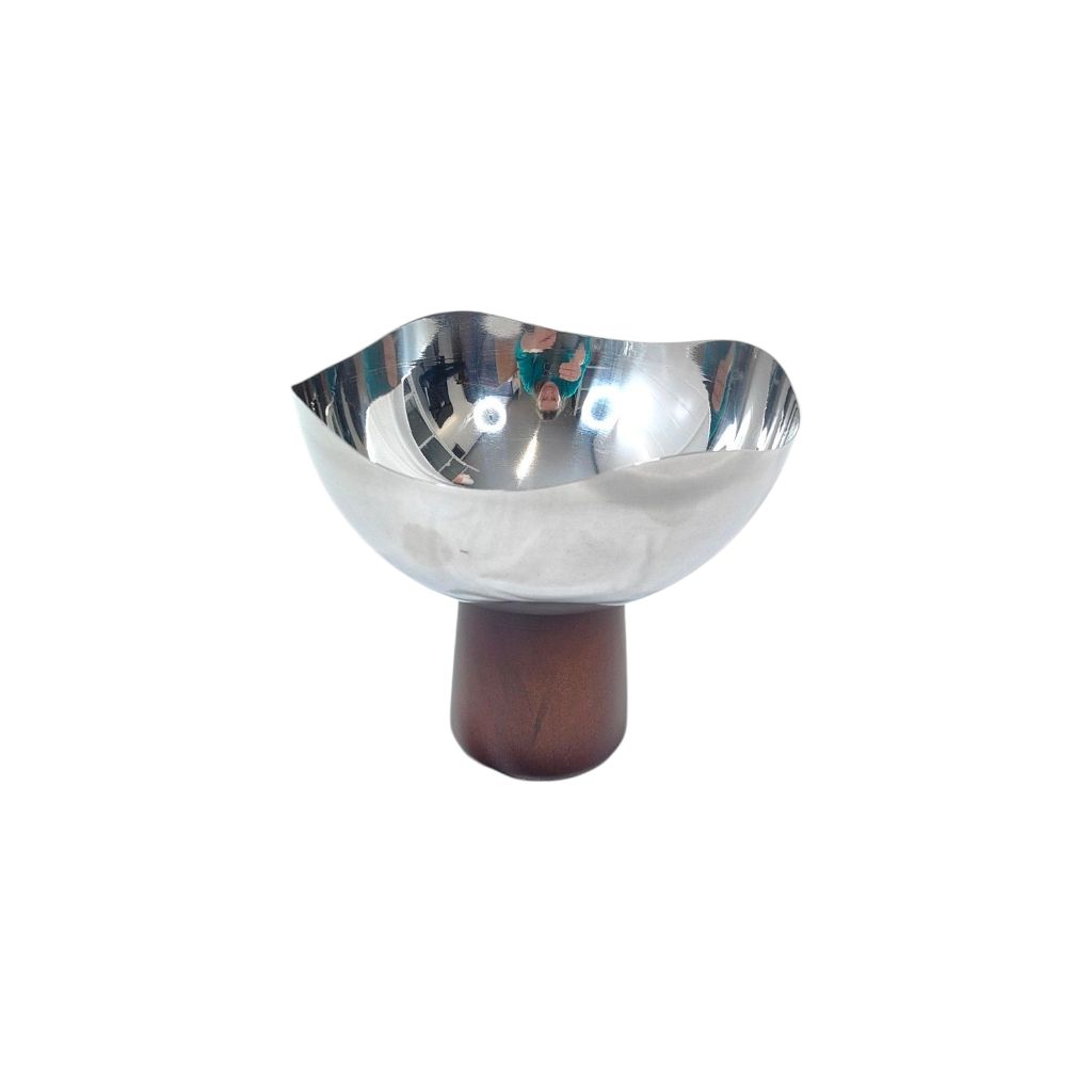 Чаша для сервировки металлическая на деревянной ножке d18 х h15 см, хром, FA53-1
