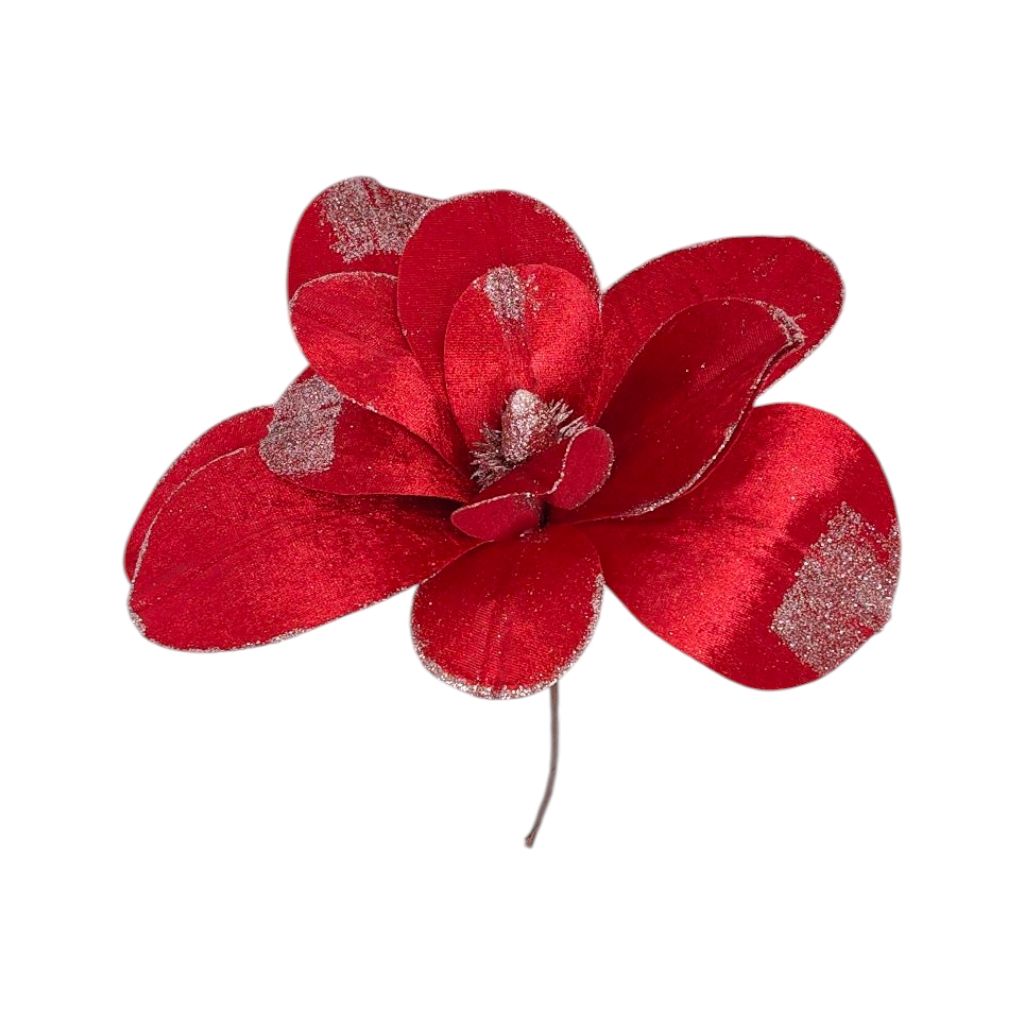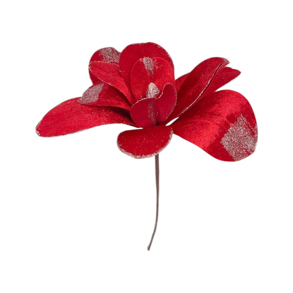 Цветок искусственный декоративный, красный с серебром, h25 см, FA48-44