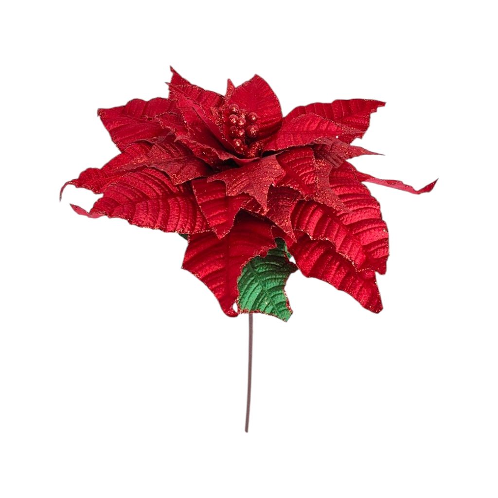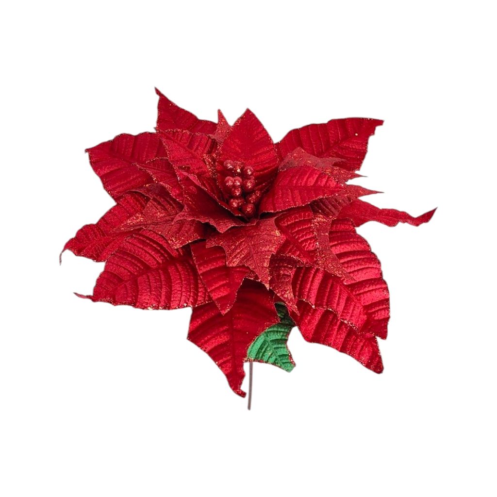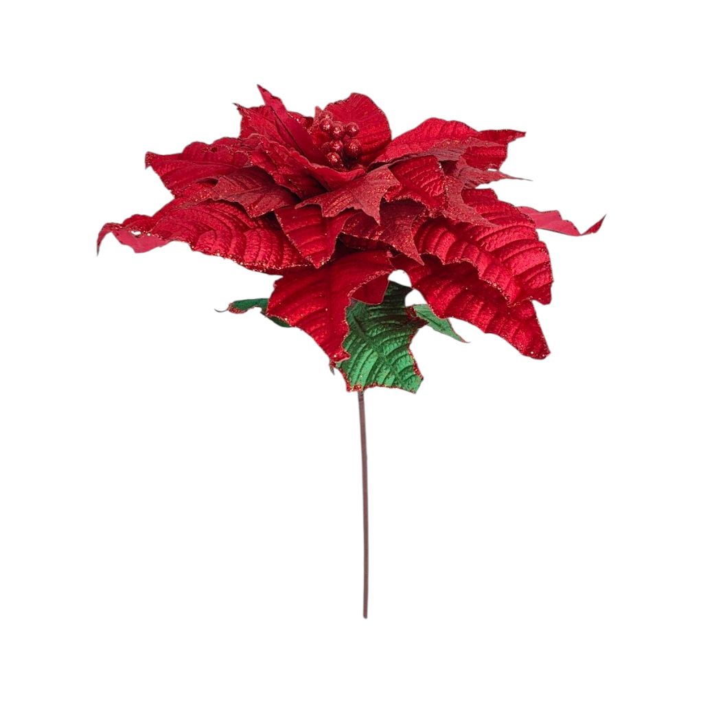 Цветок искусственный Пуансеттия Люкс бархат, h80 см, FA48-22