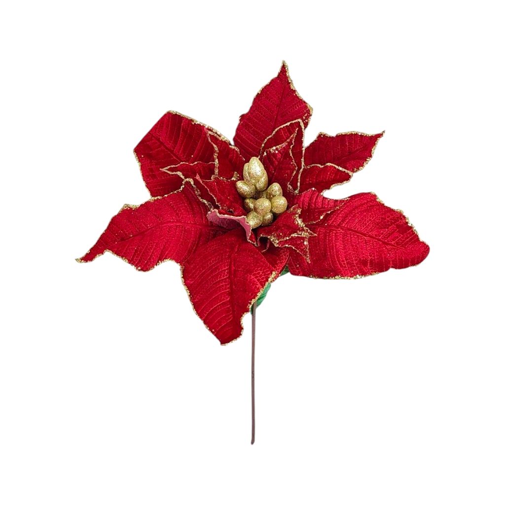 Цветок искусственный Пуансеттия Люкс бархат, красный с золотом, h75 см, FA48-23