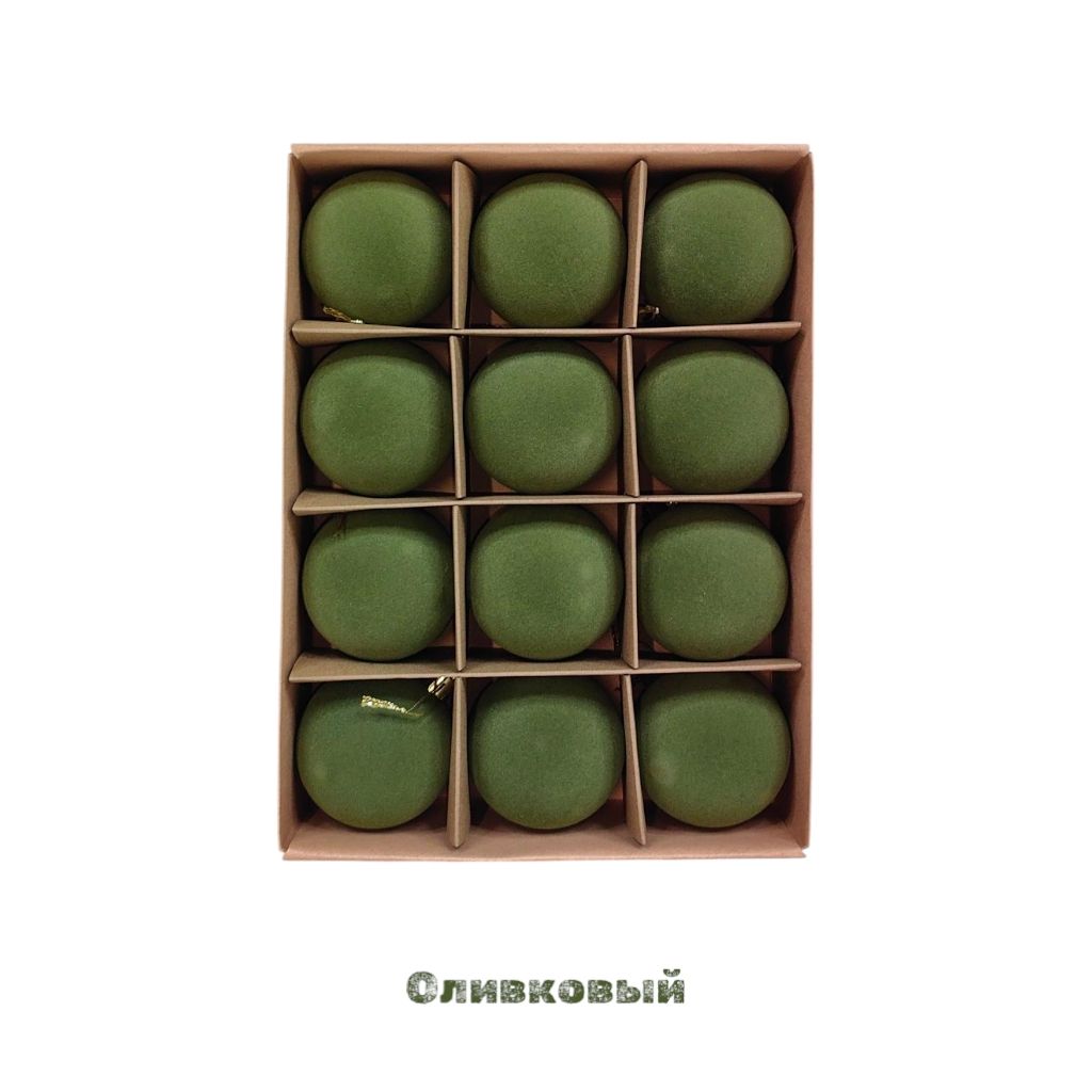 Елочный шар Бархат d6 см, 12 шт, FA48-1 (оливковый)