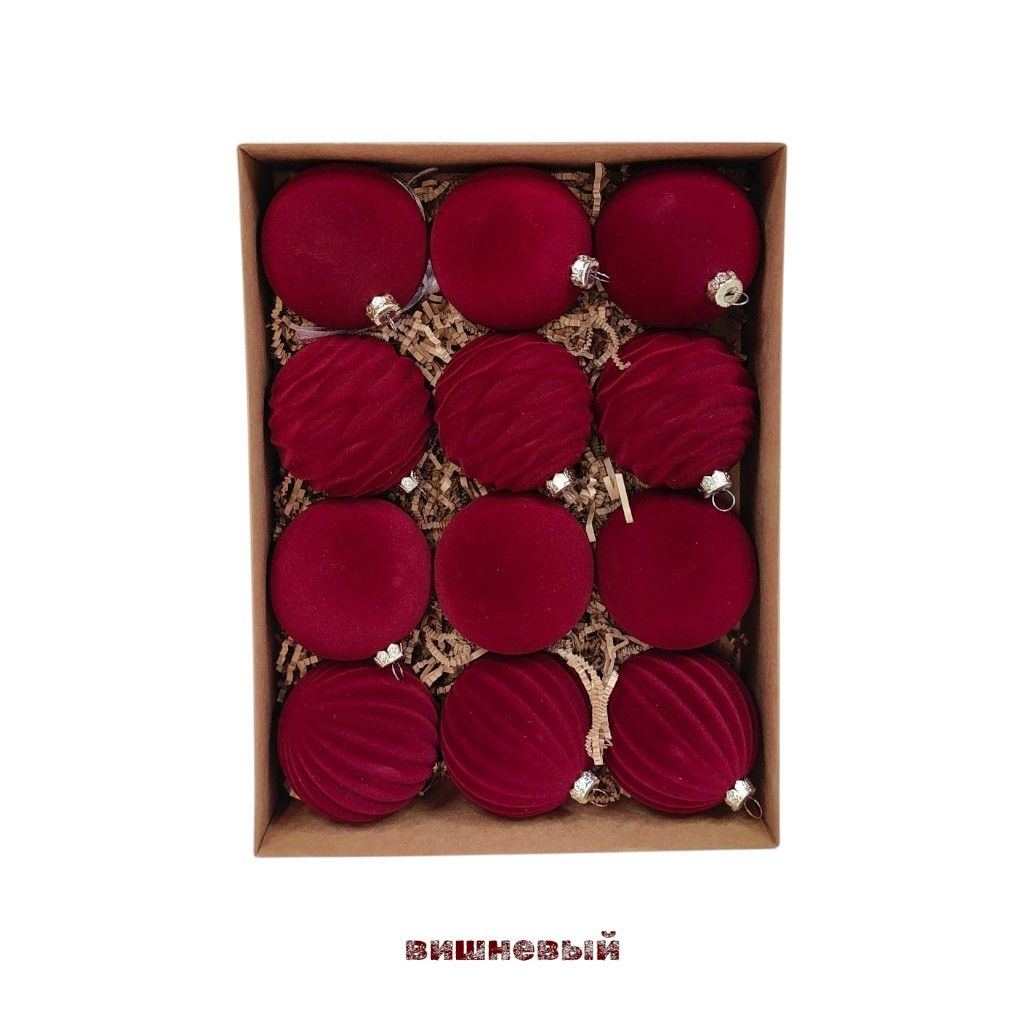 Елочный шар Бархат d8 см, 12 шт, FA48-2 (вишневый)
