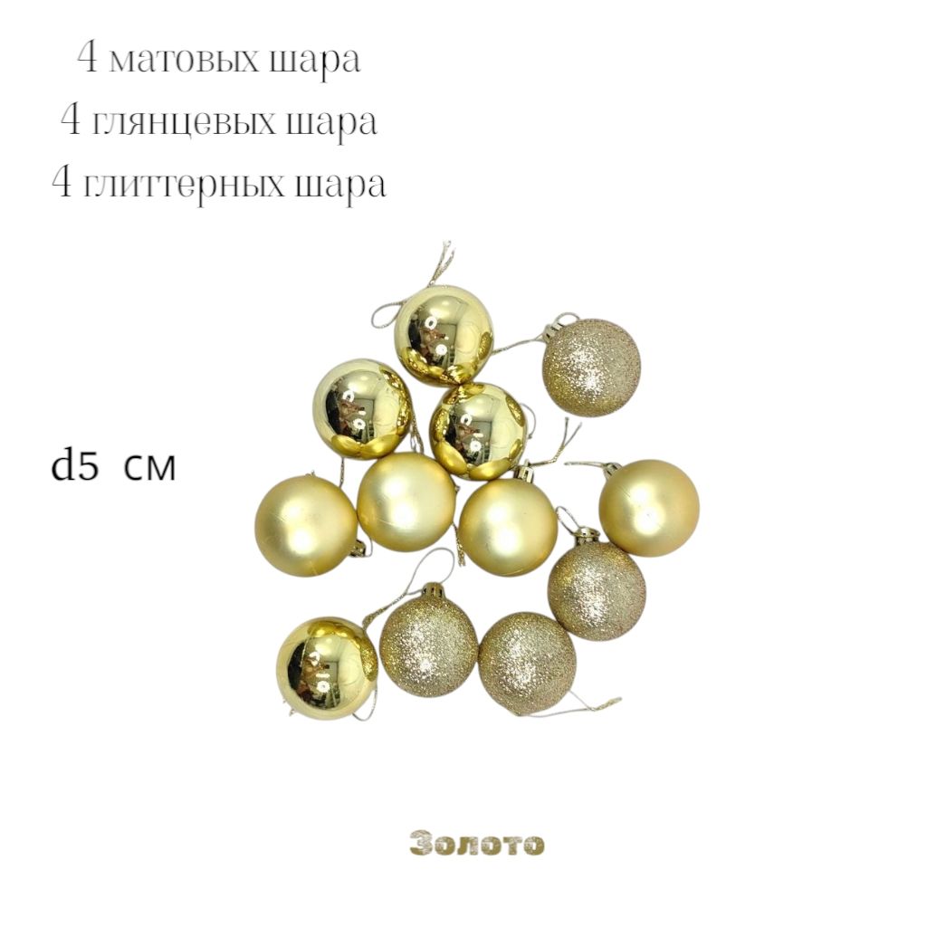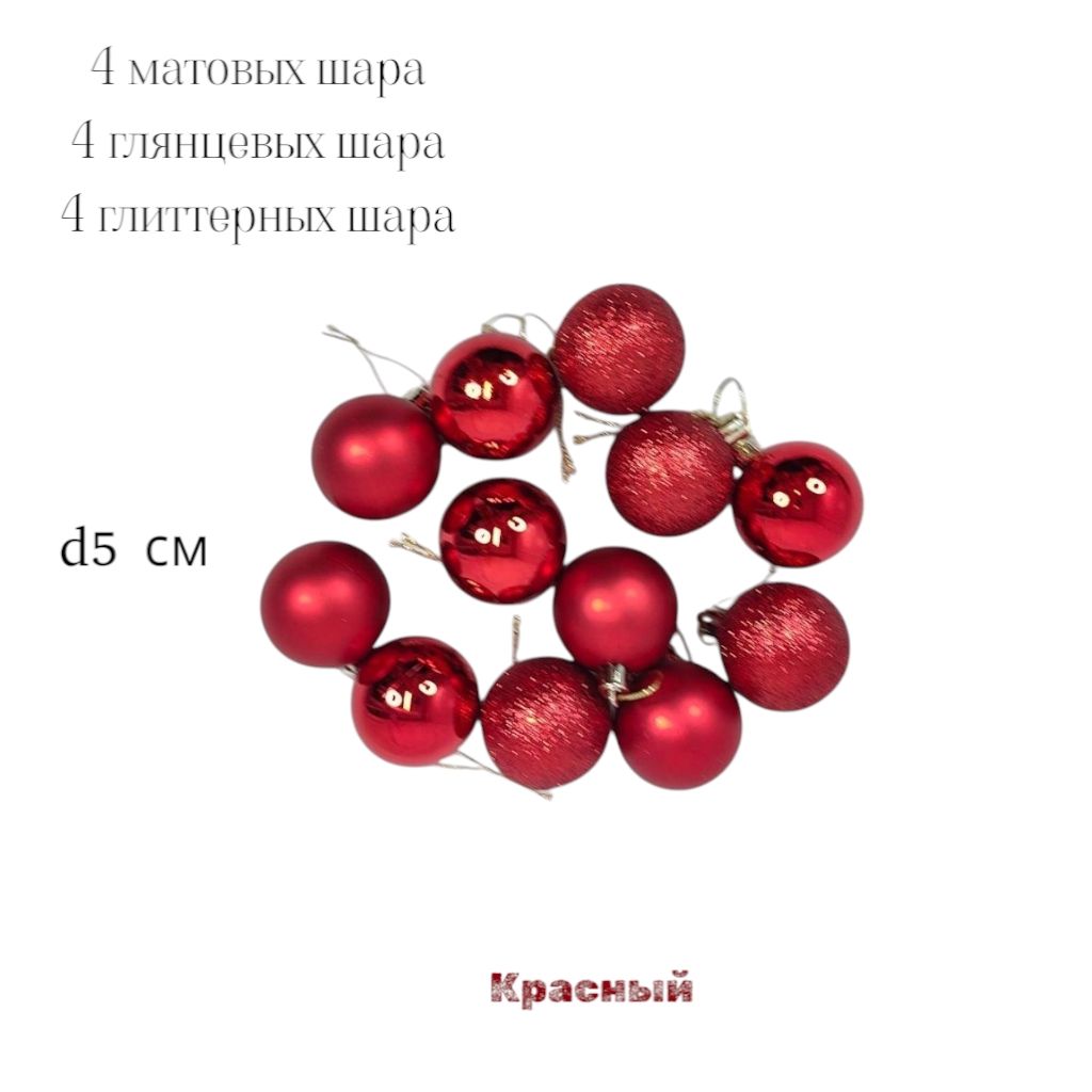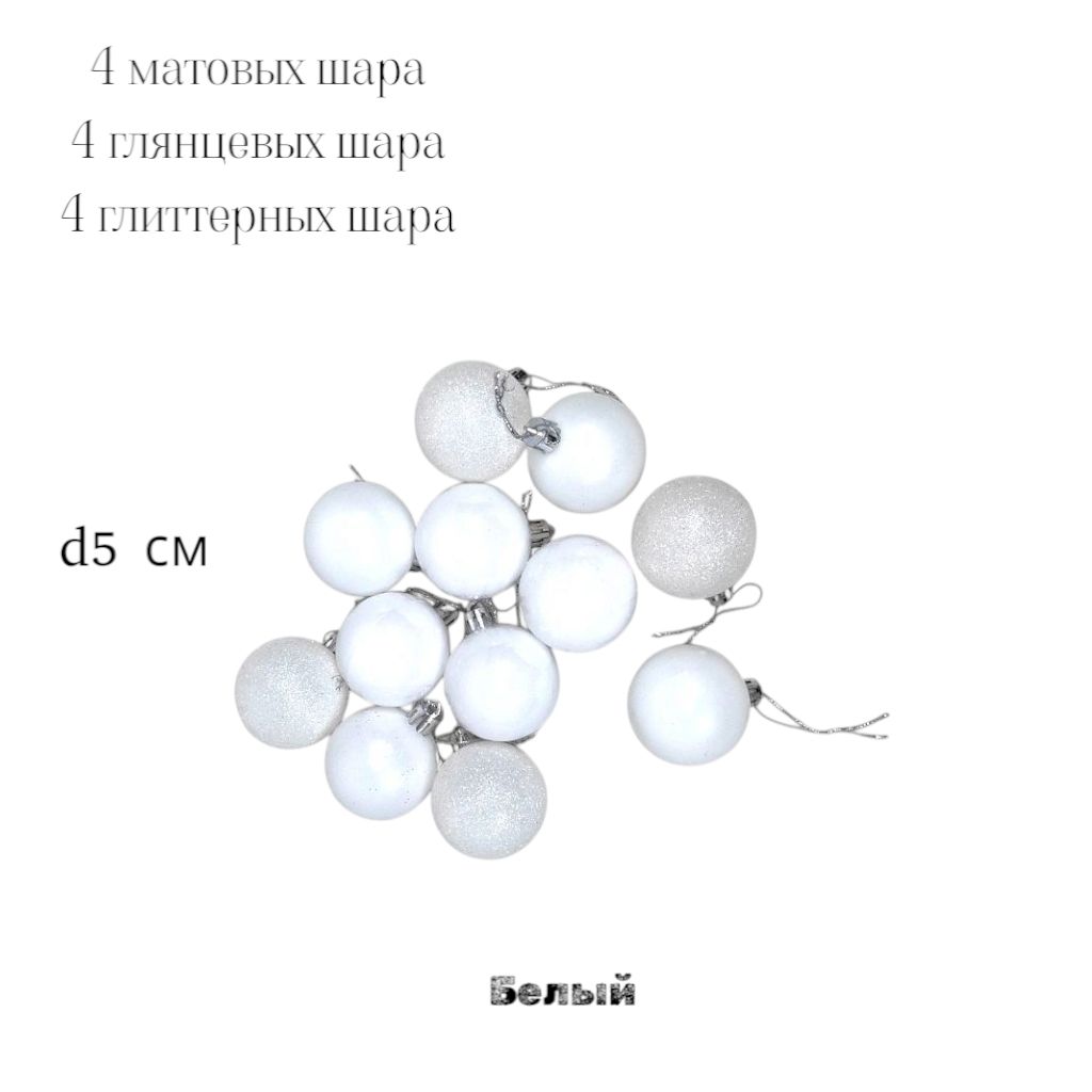Елочный шар d5 см, 12 шт, пластик, FA24-3