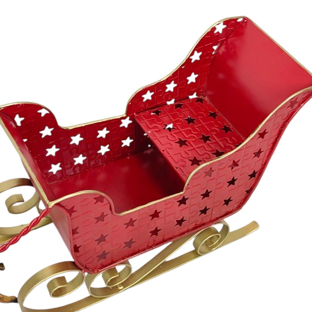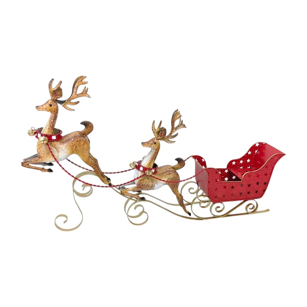 Фигура декоративная Сани с оленями новогодние h50 х 75 х 14.5 см, металл, красный/золото, FA42-37