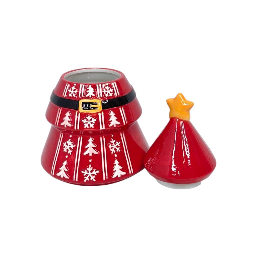 Кашпо керамическое с крышкой Елка красная, h22 см, FA46-9