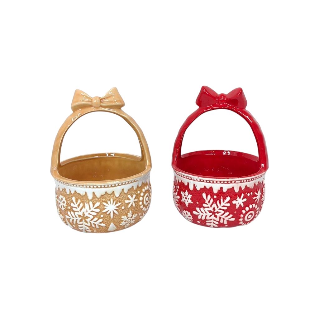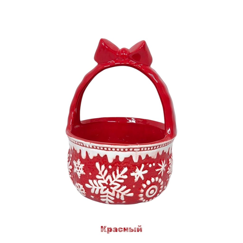 Кашпо керамическое с ручкой Новогодний узор, d14 см, FA46-3 (красный)