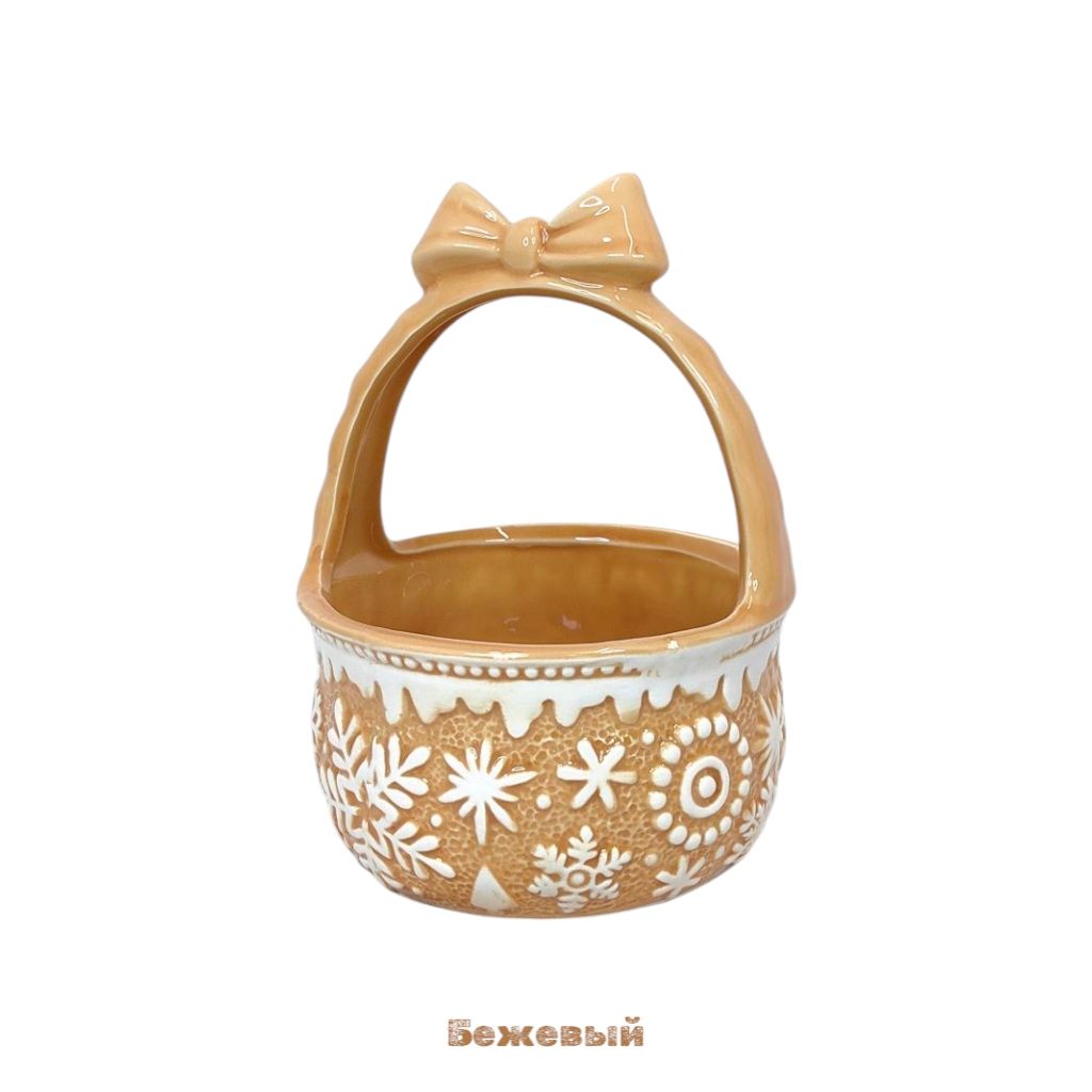 Отзывы о Кашпо керамическое с ручкой Новогодний узор, d14 см, FA46-3 (красный)