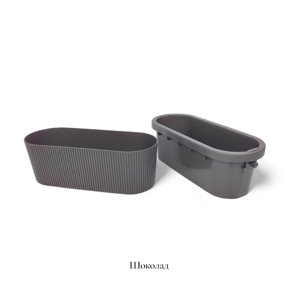Кашпо пластиковое с дренажной системой Овальное h16 х 40 х 16 см, FA57-28 Выбрать цвет: серый, темно-серый, шоколад; описание, фото о товаре.