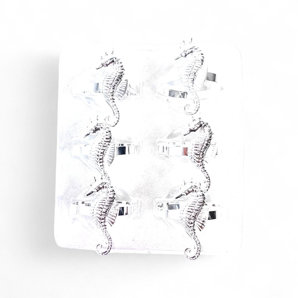 Кольцо для салфеток Морской конек d4 см, 6 шт, металл, серебро, FA61-7, описание, фото о товаре.