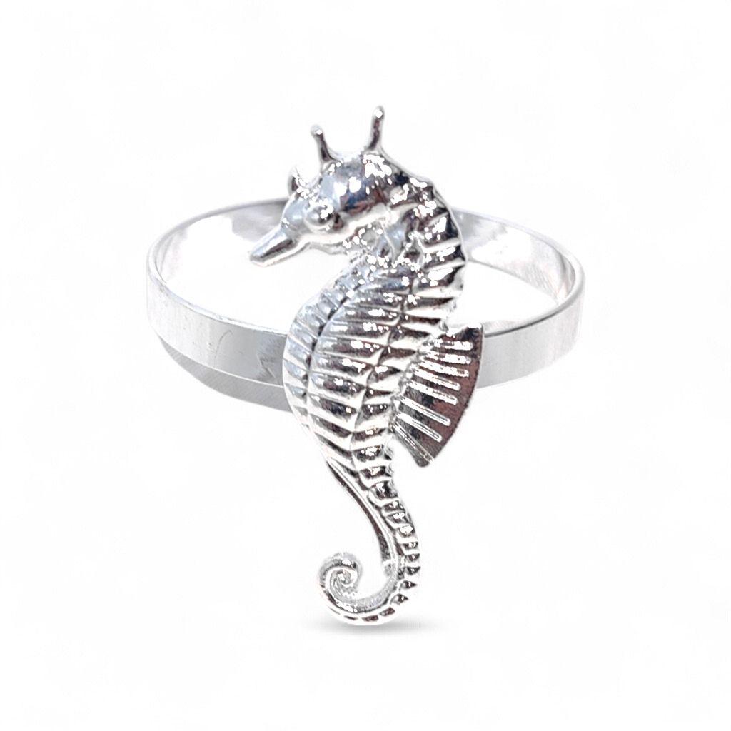 Кольцо для салфеток Морской конек d4 см, 6 шт, металл, серебро, FA61-7