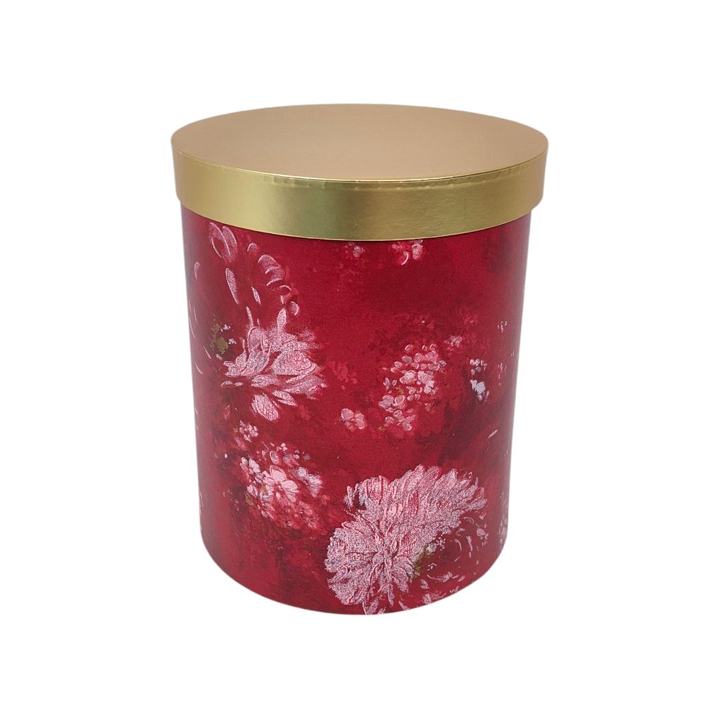 Коробка цилиндр Акварель цветы h44 х d32 см, бордовый/золото, FA54-56
