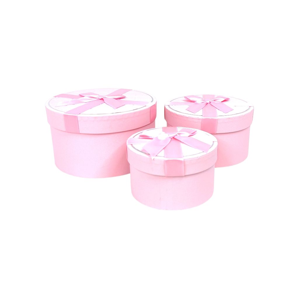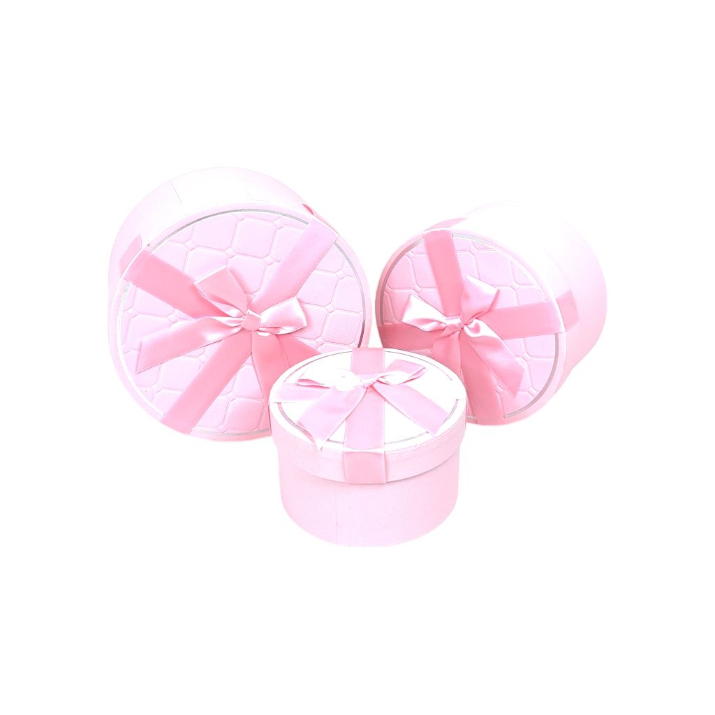 Коробка цилиндр с бантом, набор из 3 шт, розовый, FA54-7