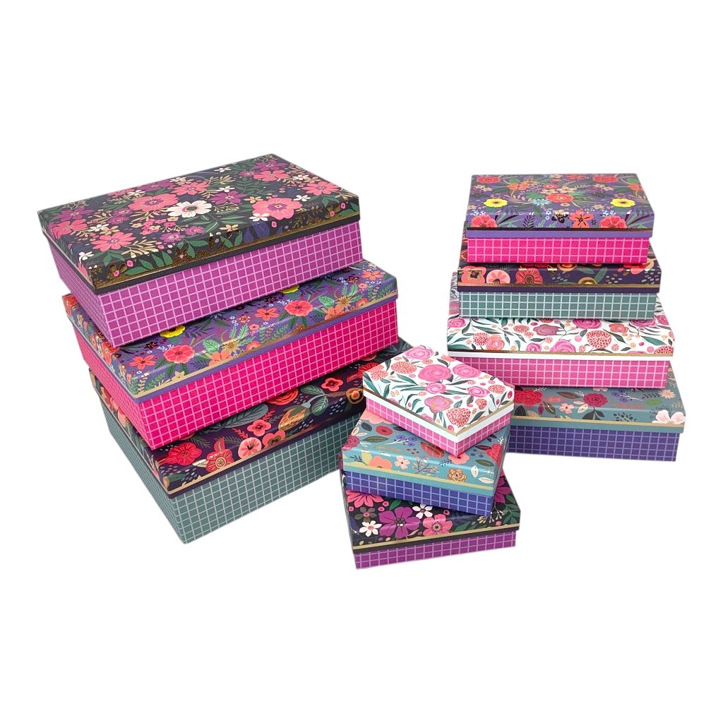Коробка прямоугольная Цветочный микс, набор из 10 шт, FA54-22
