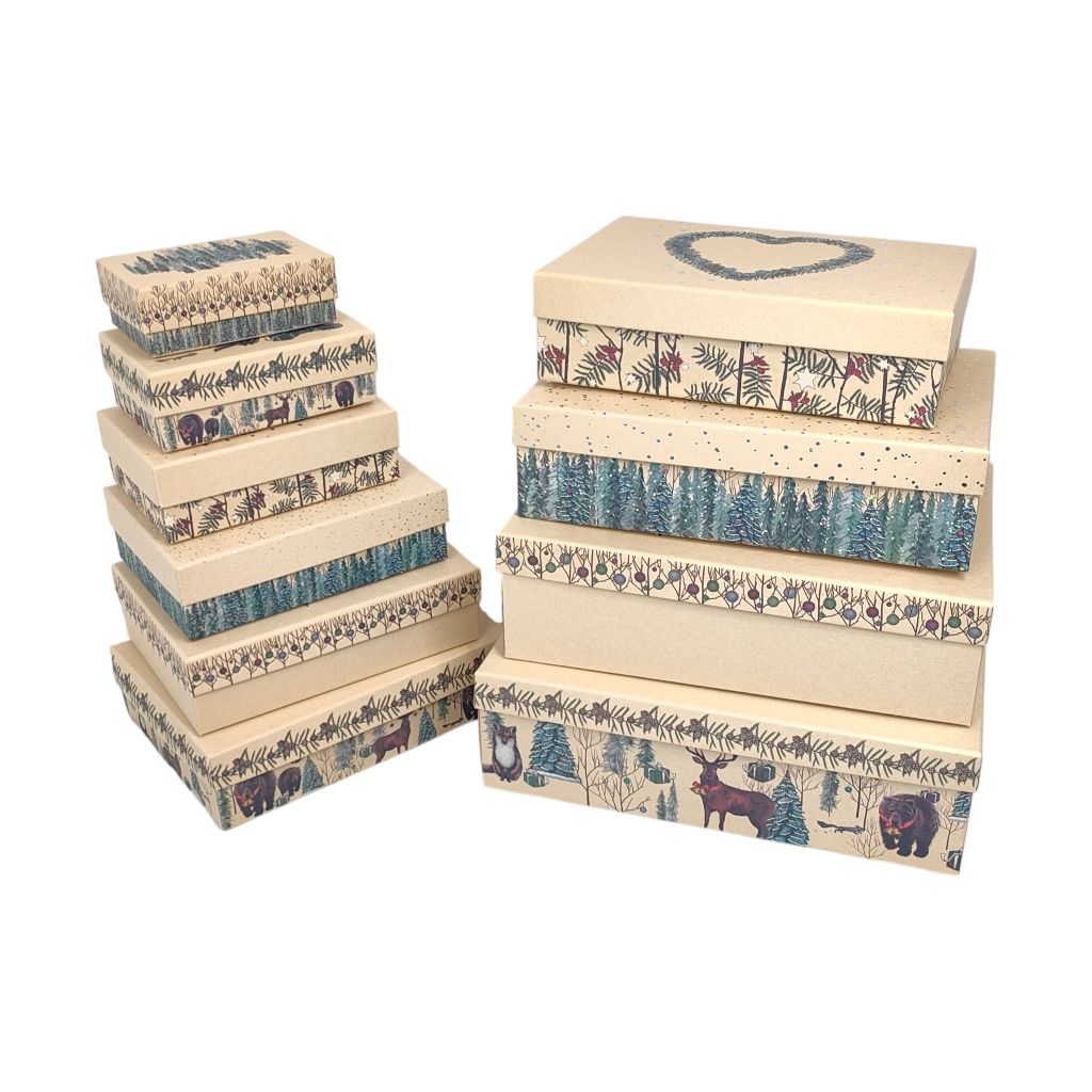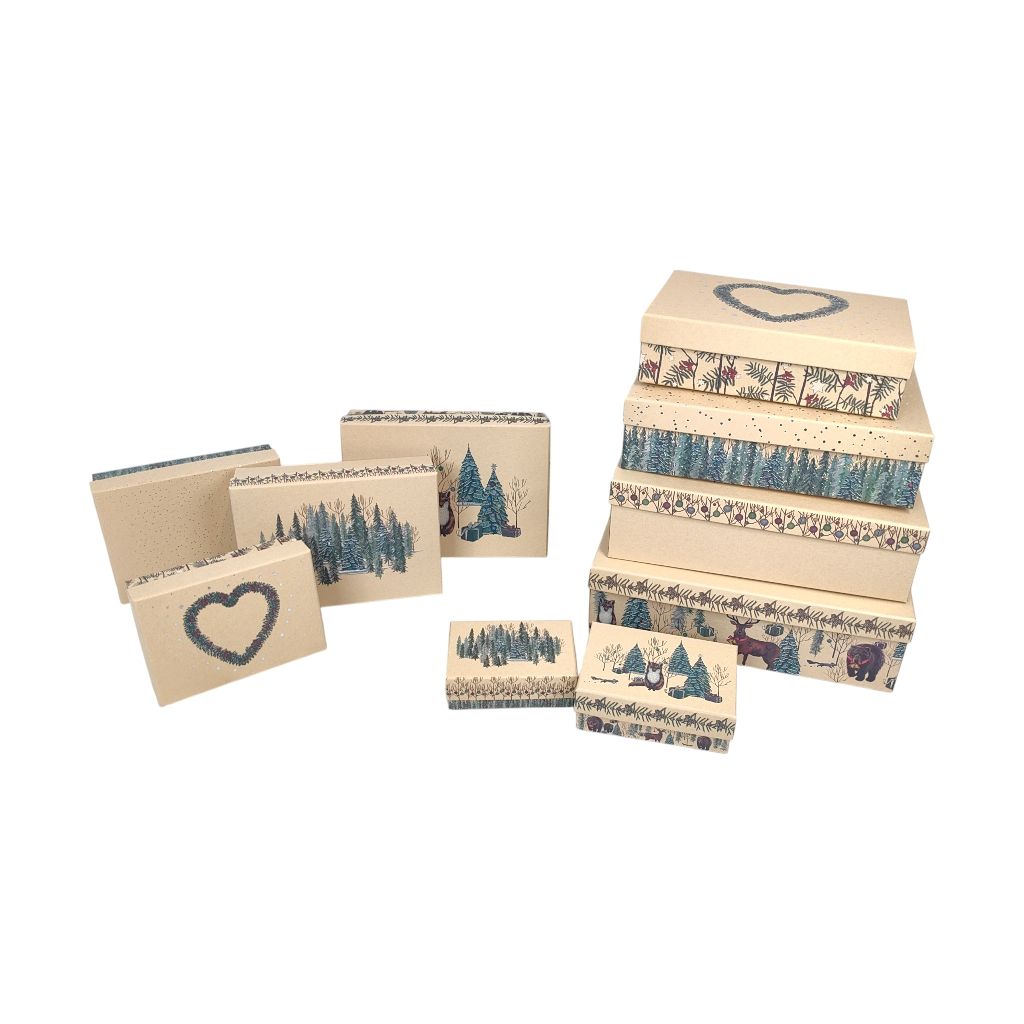 Коробка прямоугольная Новогодний лес, набор из 10 шт, FA54-25