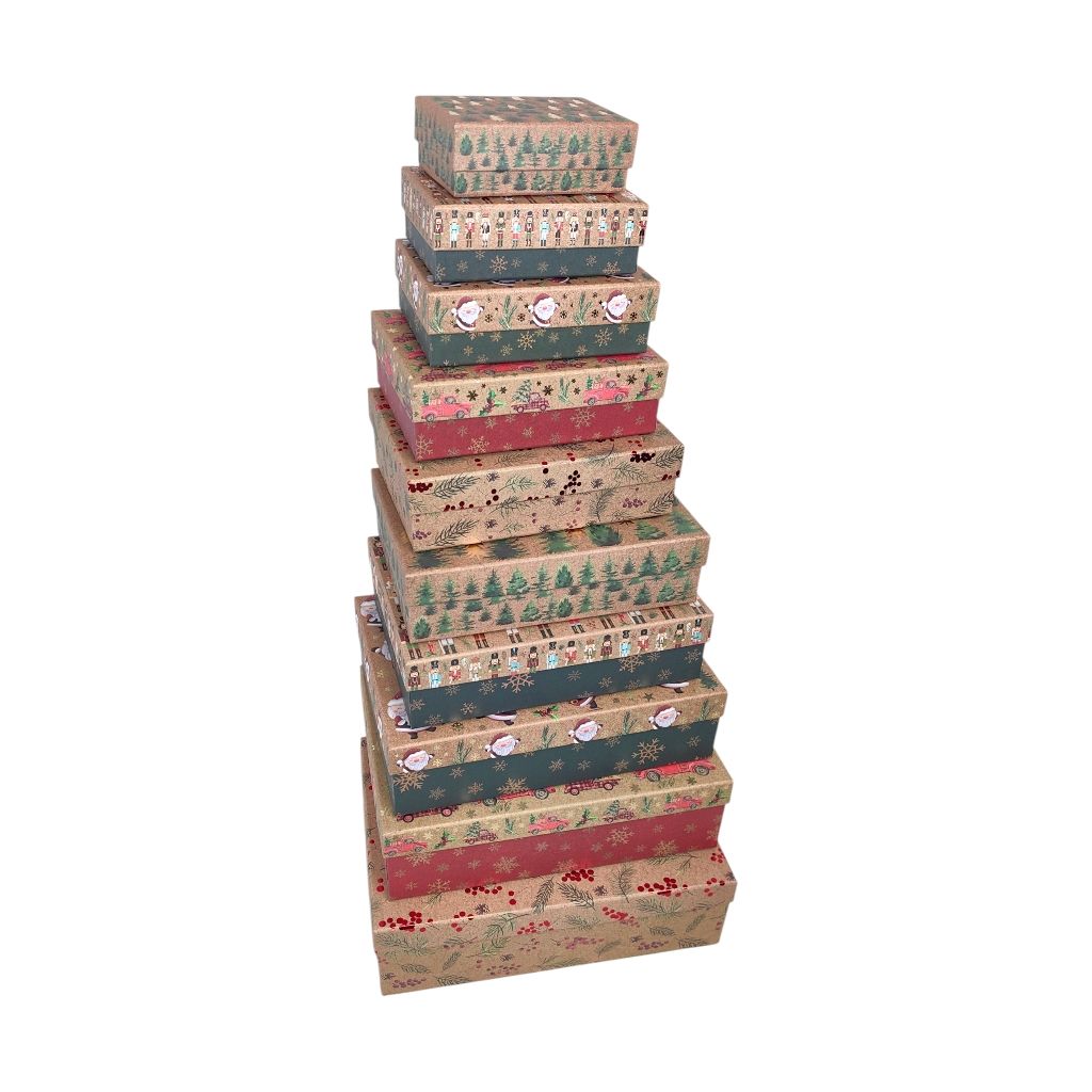 Коробка прямоугольная Новогодний микс, набор из 10 шт, FA54-27A