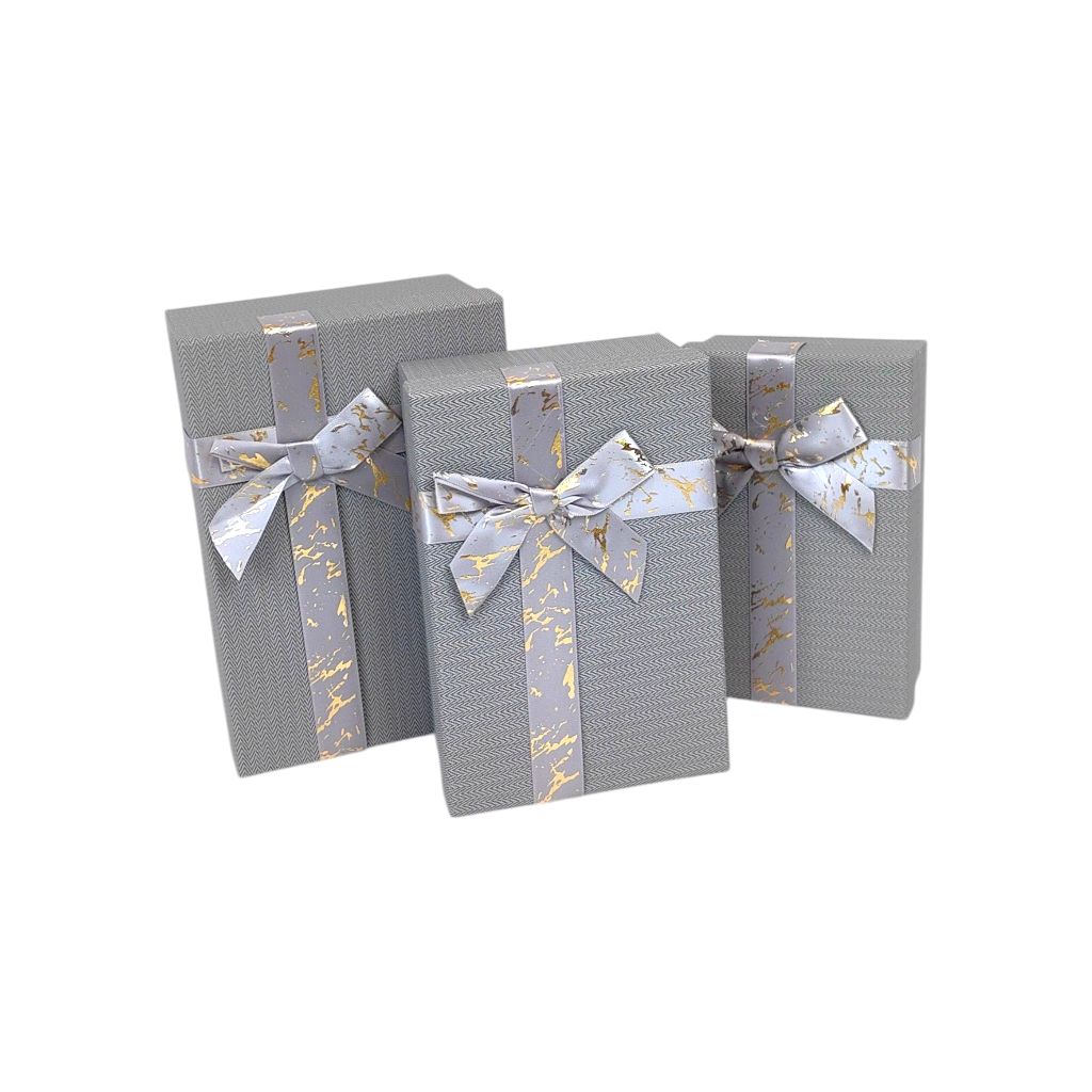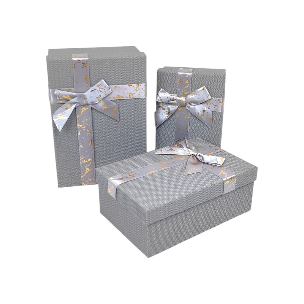 Коробка прямоугольная с бантом, набор из 3 шт, серый, FA54-3