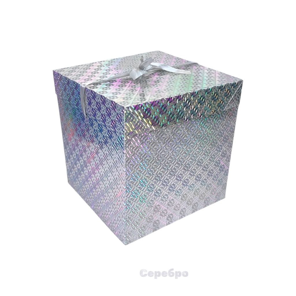 Коробка с крышкой и лентой 30 х 30 х 30 см, Голография, FA39-93 Выбрать цвет: красный, серебро, синий; описание, фото о товаре.