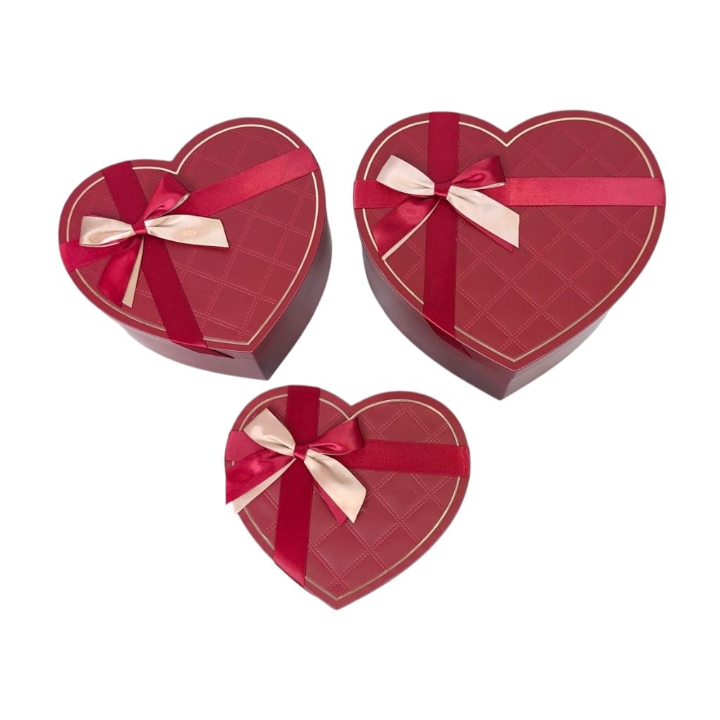Коробка Сердце с бантом, набор из 3 шт, бордовый, FA54-53
