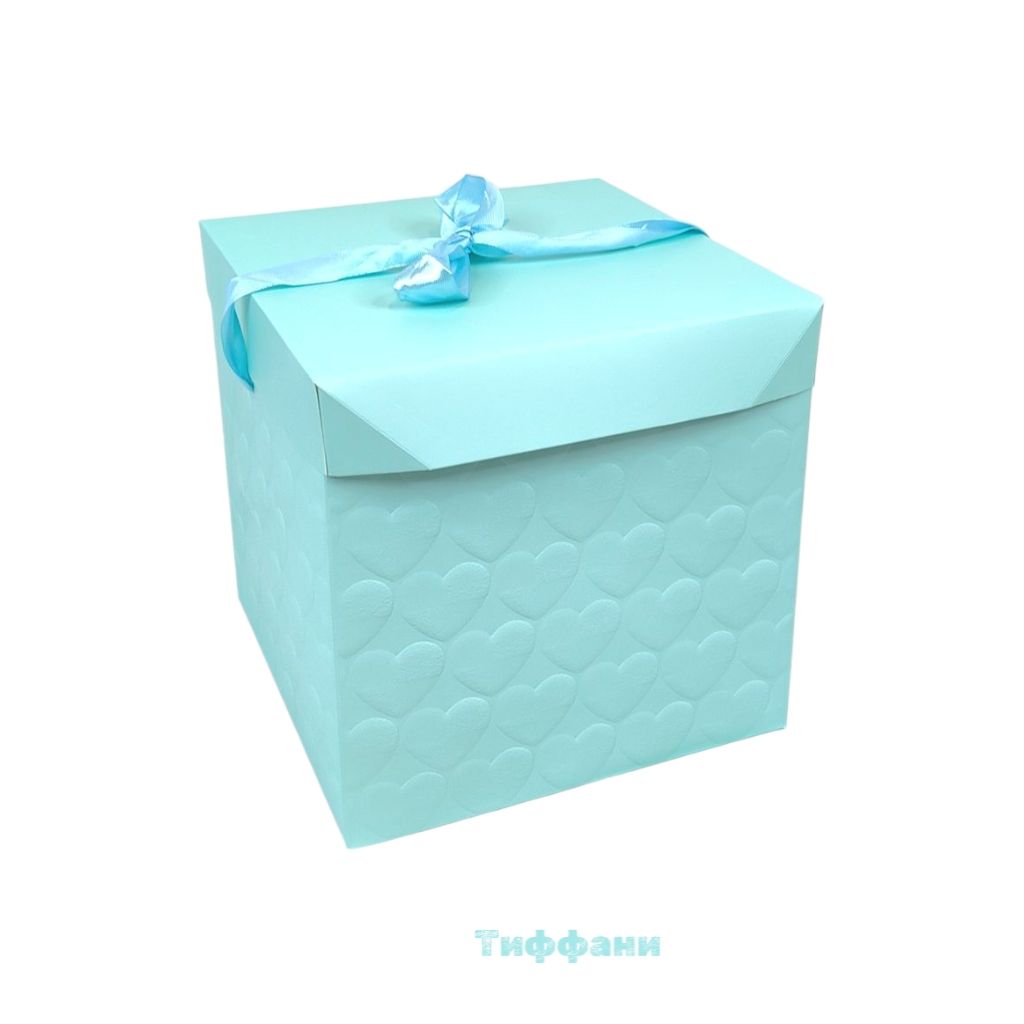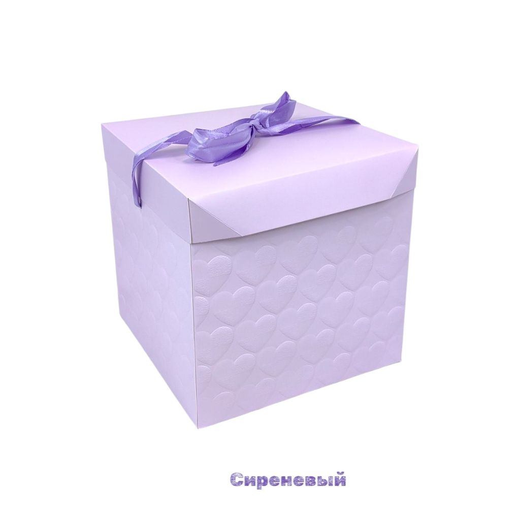 Коробка складная с крышкой и лентой 22 х 22 х 22 см, Тиснение Сердечки, FA39-28 Выбрать цвет: белый, розовый, сиреневый, тиффани; описание, фото о товаре.