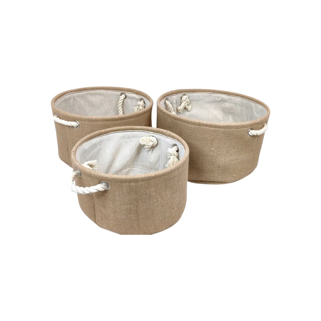 Корзина круглая с ручками, набор из 3 шт, текстиль, натуральный, FA35-28
