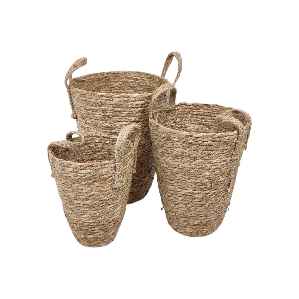 Корзина круглая с ручками, набор из 3 шт, водоросли, натуральный, FA35-35