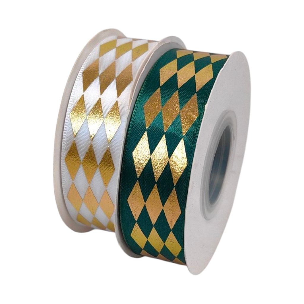 Лента атласная Арлекин 2.5 см х 25 ярдов, P87-14 (белый/золото)