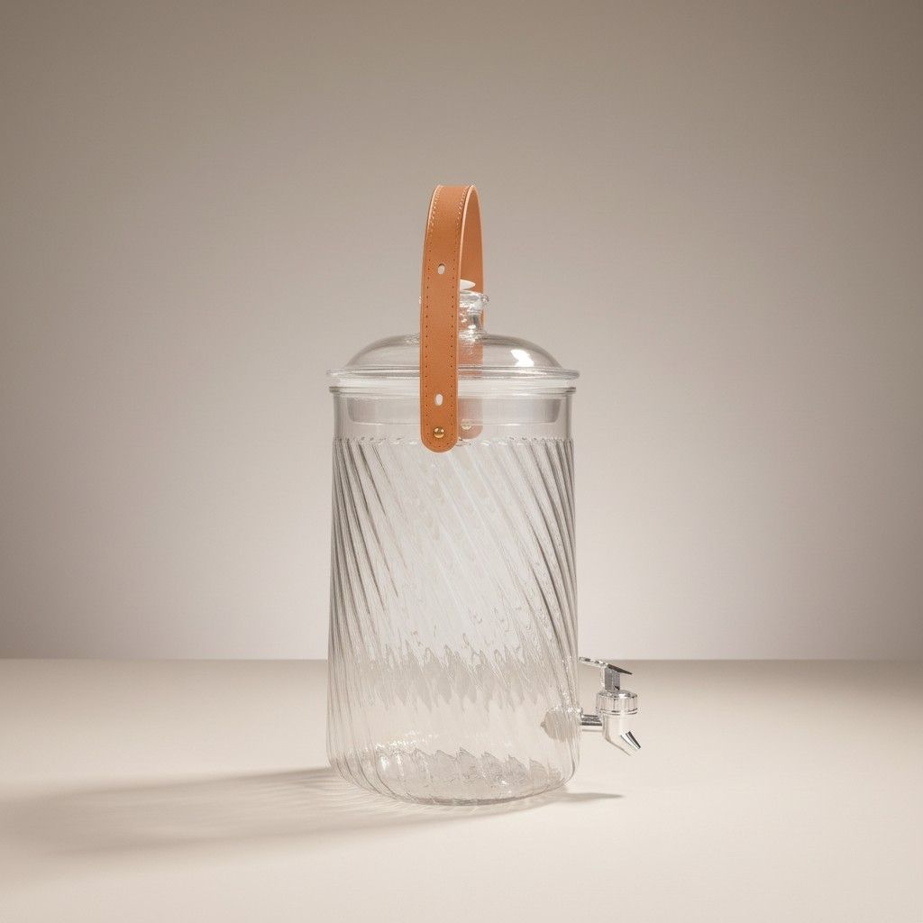 Прозрачная, вместительная и с удобным краном — она станет звездой вашего кафе, летней веранды или даже цветочной витрины (да‑да, в ней можно эффектно подавать не только напитки!).