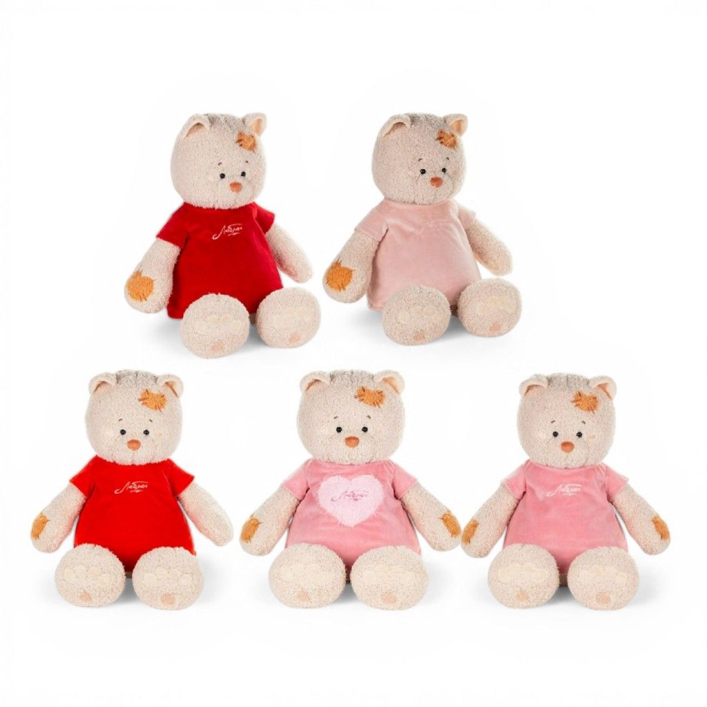 Мягкая игрушка Кошка Мэри 37(47) см Выбрать цвет: алое платье, красное платье, пудровое платье, пудровое платье с сердцем, светло-пудровое платье; описание, фото о товаре.