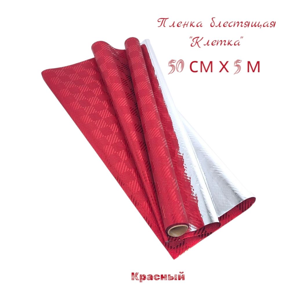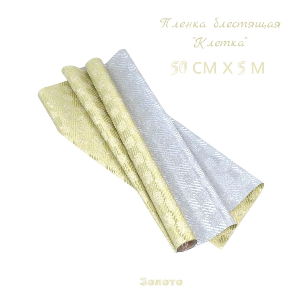 Пленка в рулоне Клетка с блеском 50 см х 5 м Выбрать цвет: золото, красный, розовый, серебро, тиффани; описание, фото о товаре.