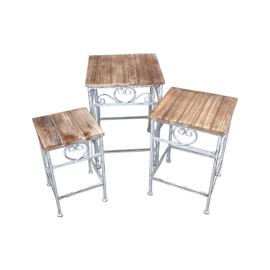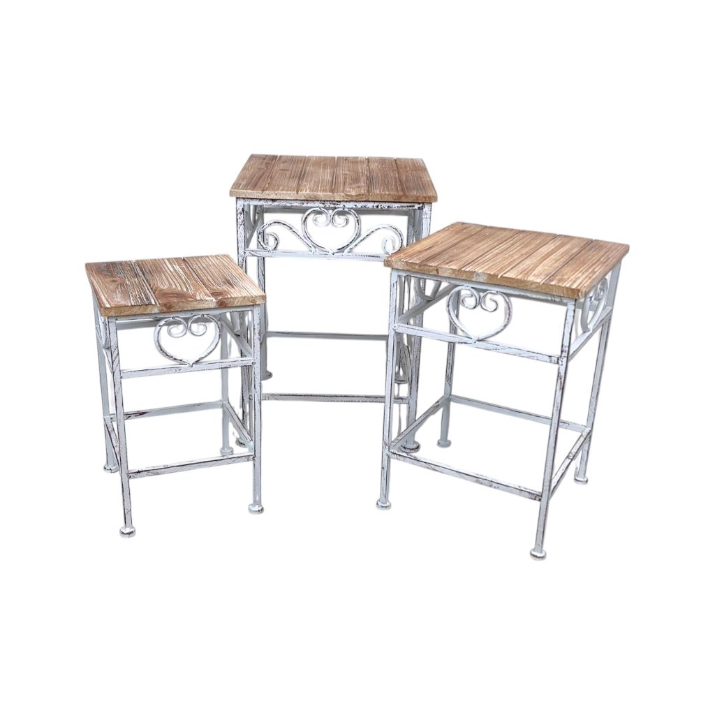 Подставка для цветов Квадратная, набор из 3 шт, металл/дерево, белый, FA42-43