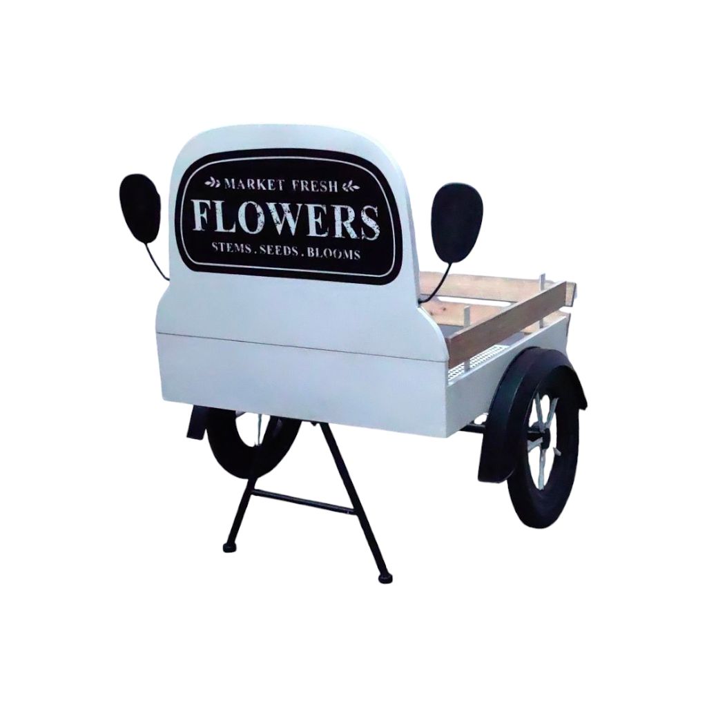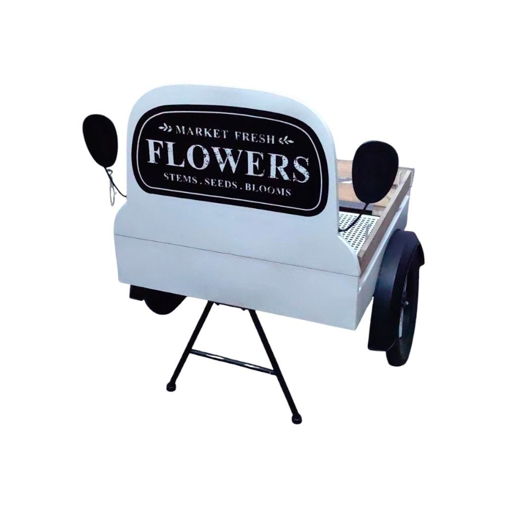 Подставка металлическая для цветов Тачка на колесах h67 х 50 х 50 см, белый/черный, FA42-35, описание, фото о товаре.