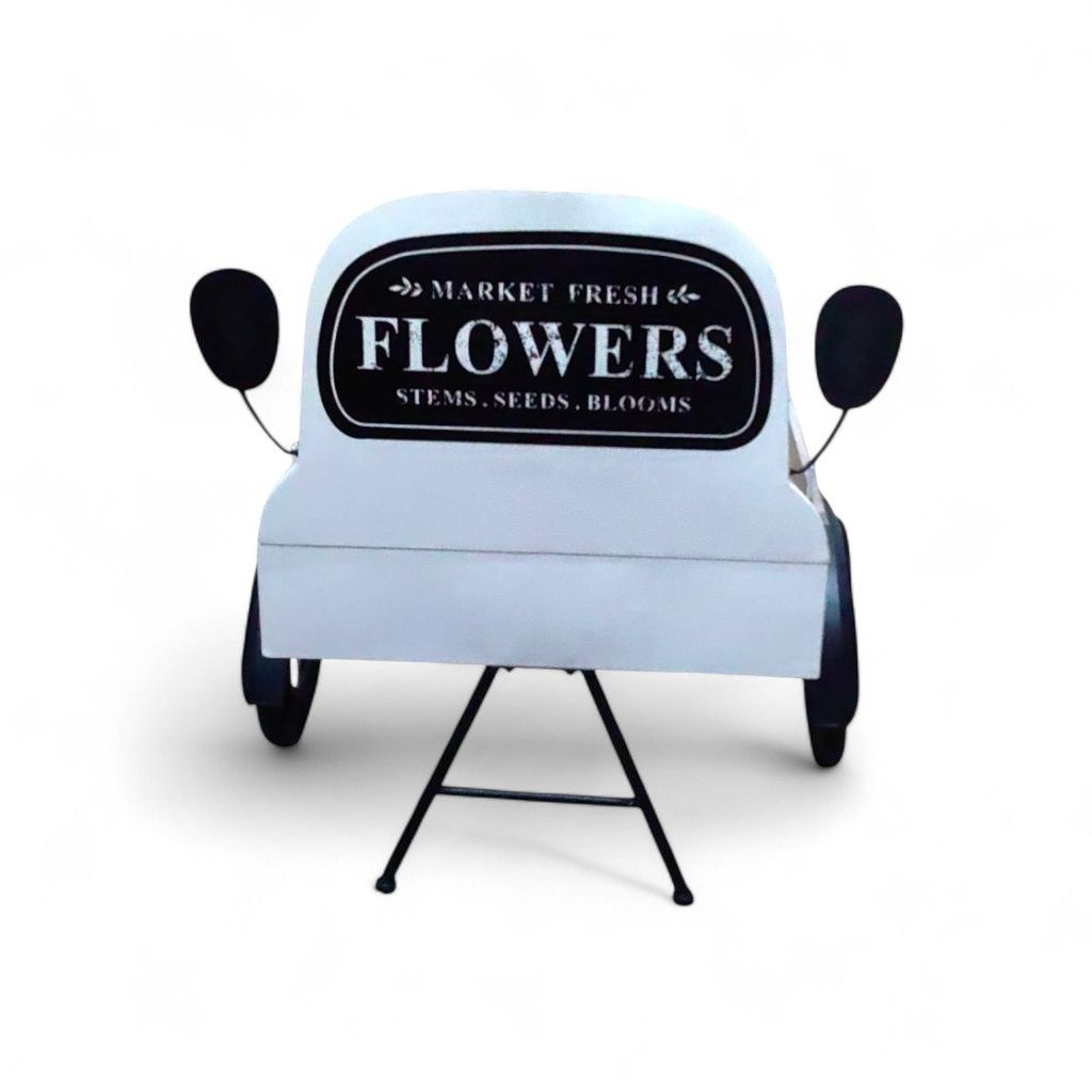 Подставка металлическая для цветов Тачка на колесах h67 х 50 х 50 см, белый/черный, FA42-35