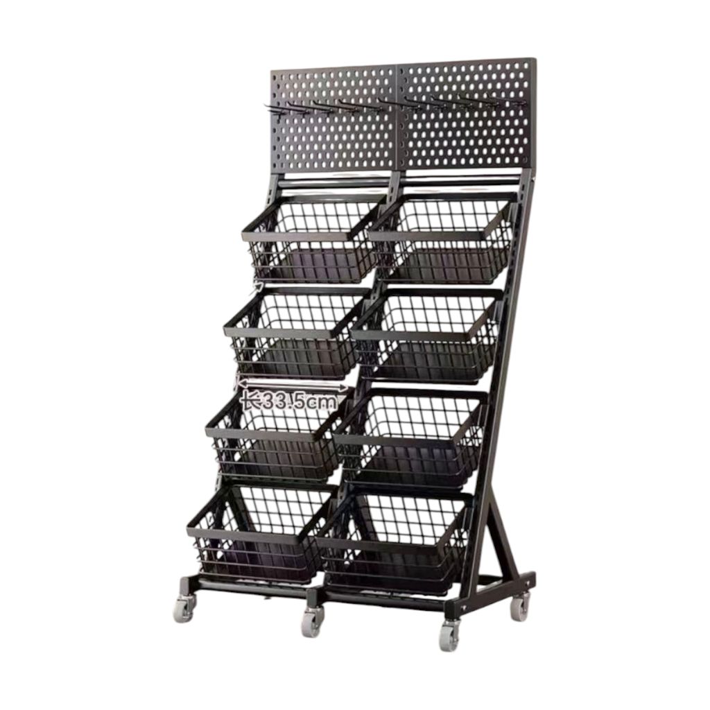 Отзывы о Стойка металлическая на калесах на 8 прямоугольных корзин, h137 х 72.5 х 43 см, черный, T1-1