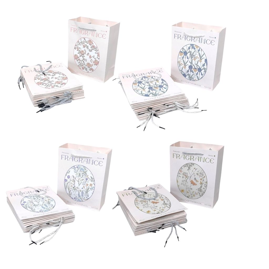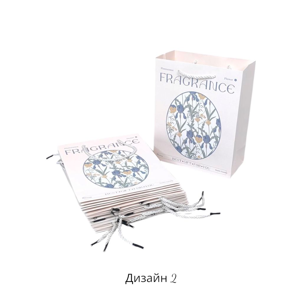 - Тематический принт "Цветочный аромат": Сумки украшены изящными цветочными композициями, которые делают упаковку самостоятельным элементом подарка. Дизайн выполнен в нежной, романтичной цветовой гамме.