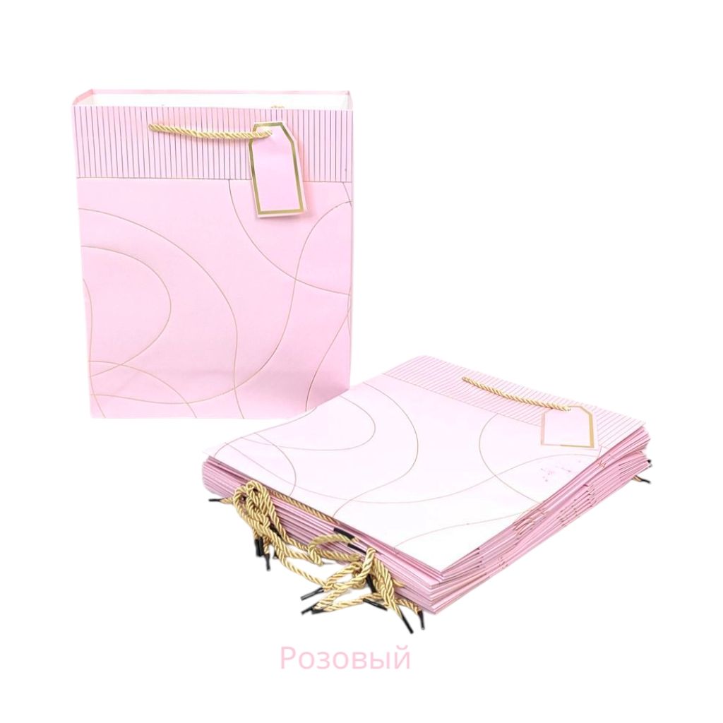 Сумка бумажная 32 х 26 х 10 см, Золотые линии, 12 шт, FA39-75 (розовый), описание, фото о товаре.