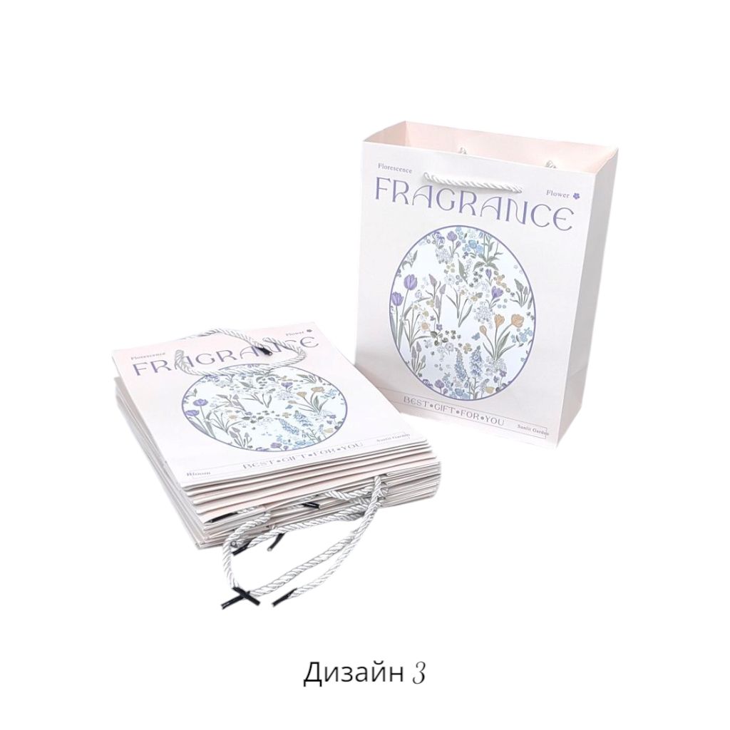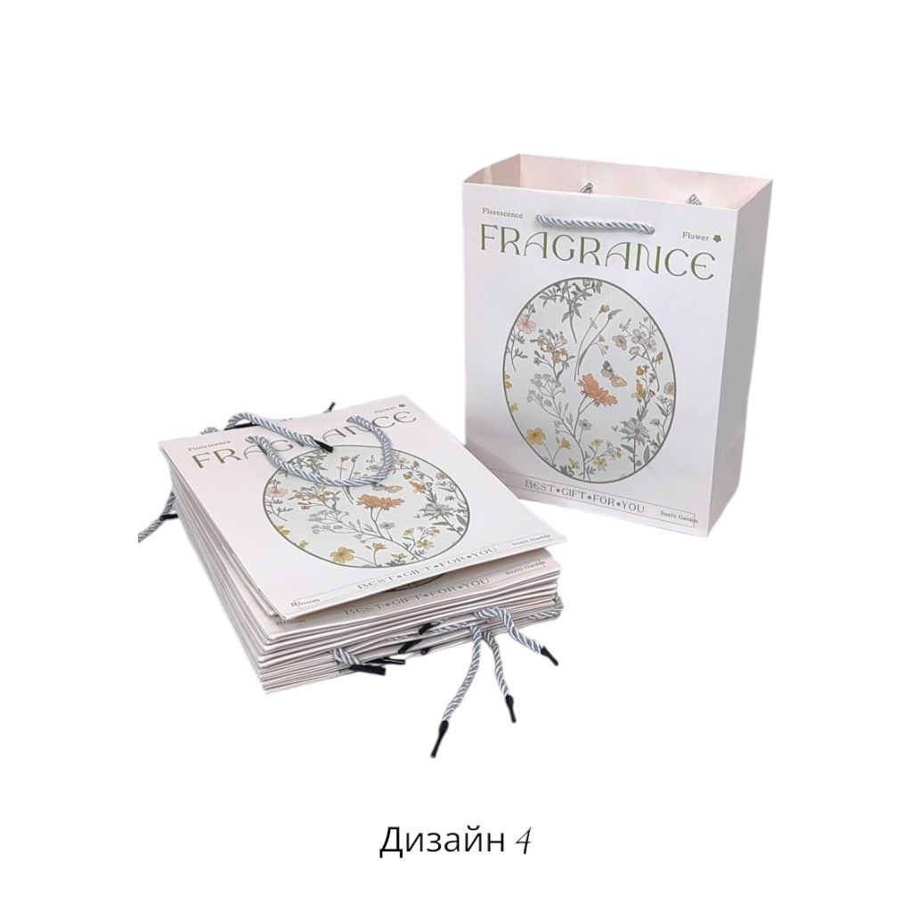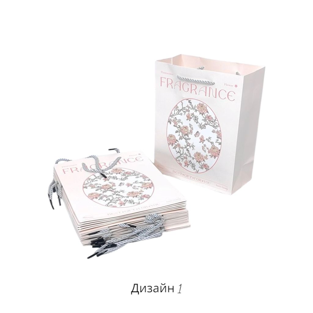 - Тематический принт "Цветочный аромат": Сумки украшены изящными цветочными композициями, которые делают упаковку самостоятельным элементом подарка. Дизайн выполнен в нежной, романтичной цветовой гамме.