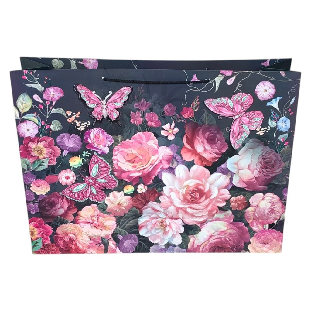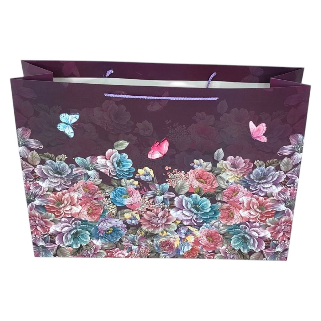 Описание Сумка бумажная горизонтальная 59 х 44 х 17 см, Цветы, 12 шт, FA39-38