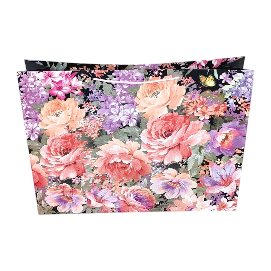 Сумка бумажная горизонтальная 59 х 44 х 17 см, Цветы, 12 шт, FA39-38