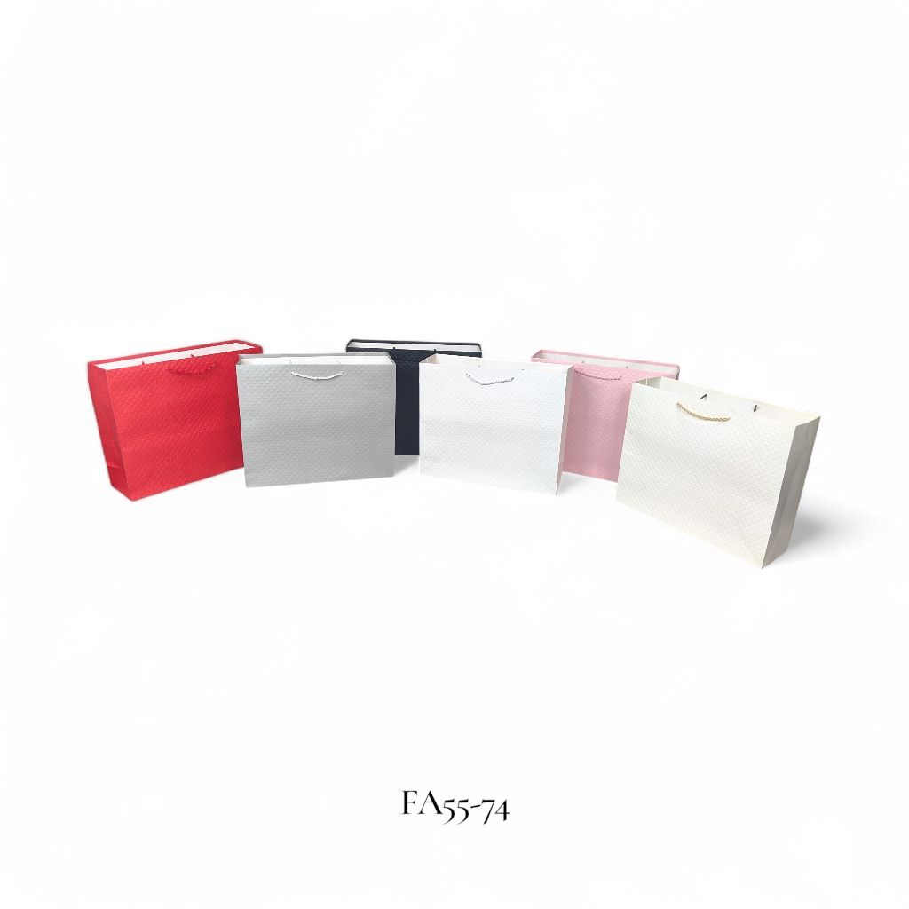 Сумка бумажная горизонтальная с тиснением 26 х 32 х 11 см, Однотонный микс, 12 шт, FA55-74
