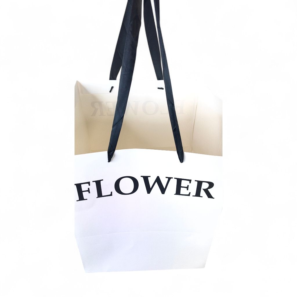 Сумка бумажная с широким дном FLOWER h40 х 32 х 32 см, 2 шт, белый, FA3-39
