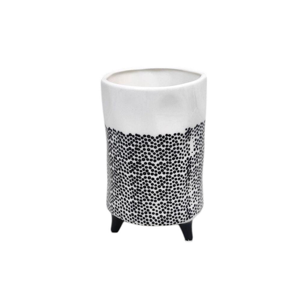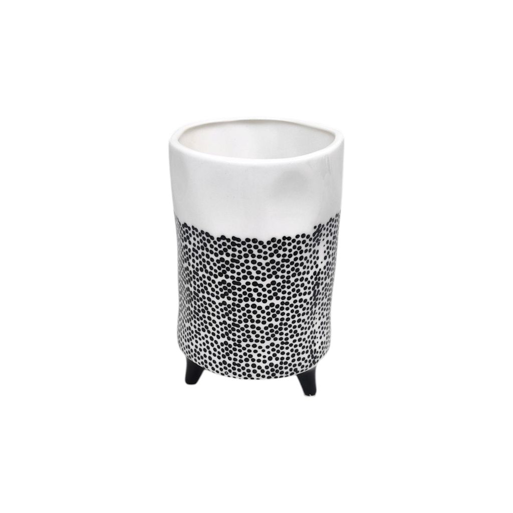 Ваза керамическая на ножках Ретро d11 х h18 см, белый/черный, FA46-36