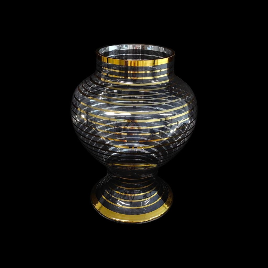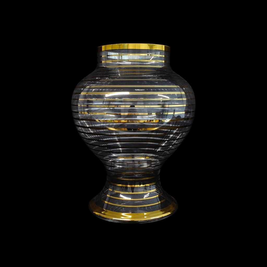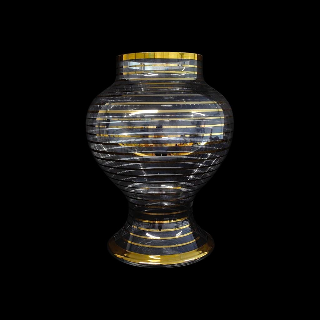 Ваза стеклянная Амфора с золотыми полосами d14 х h32 см, прозрачный, FA52-12, описание, фото о товаре.