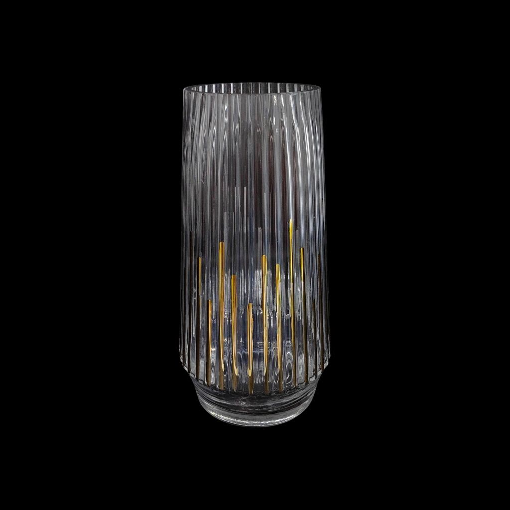 Ваза стеклянная Рифленая с золотыми полосами d10 х h30 см, прозрачный, FA52-9