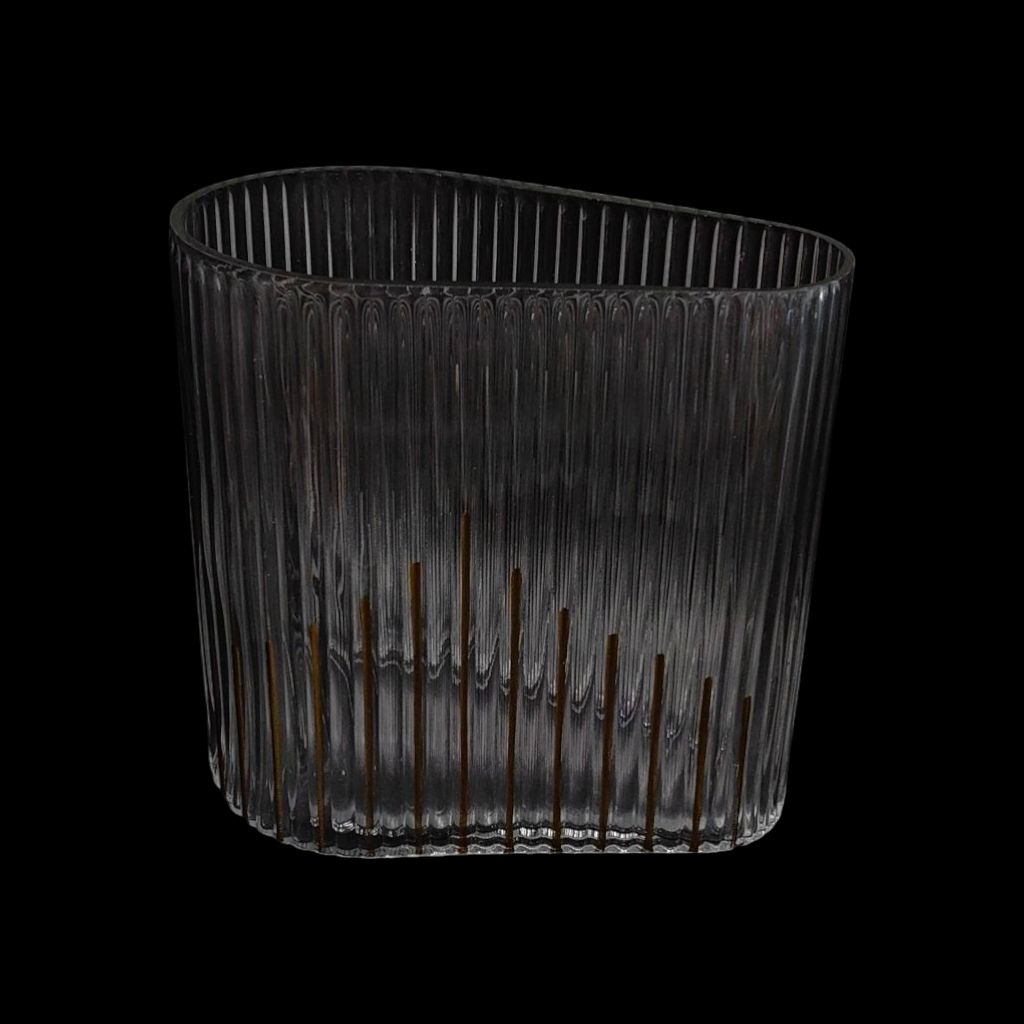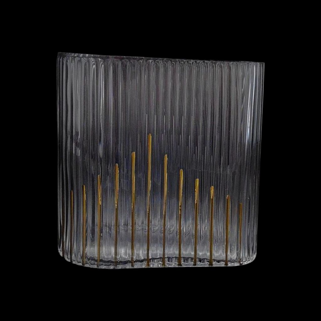 Ваза стеклянная Рифленая с золотыми полосами h19 х 20 х 11(6) см, прозрачный, FA52-5