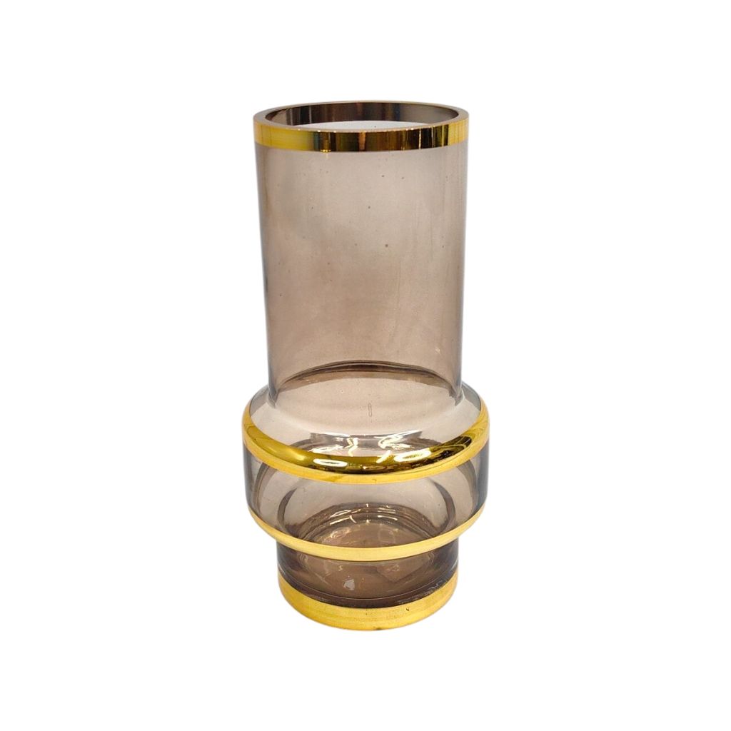Ваза стеклянная Золотые полосы d9 х h20 см, коричневый, FA52-17