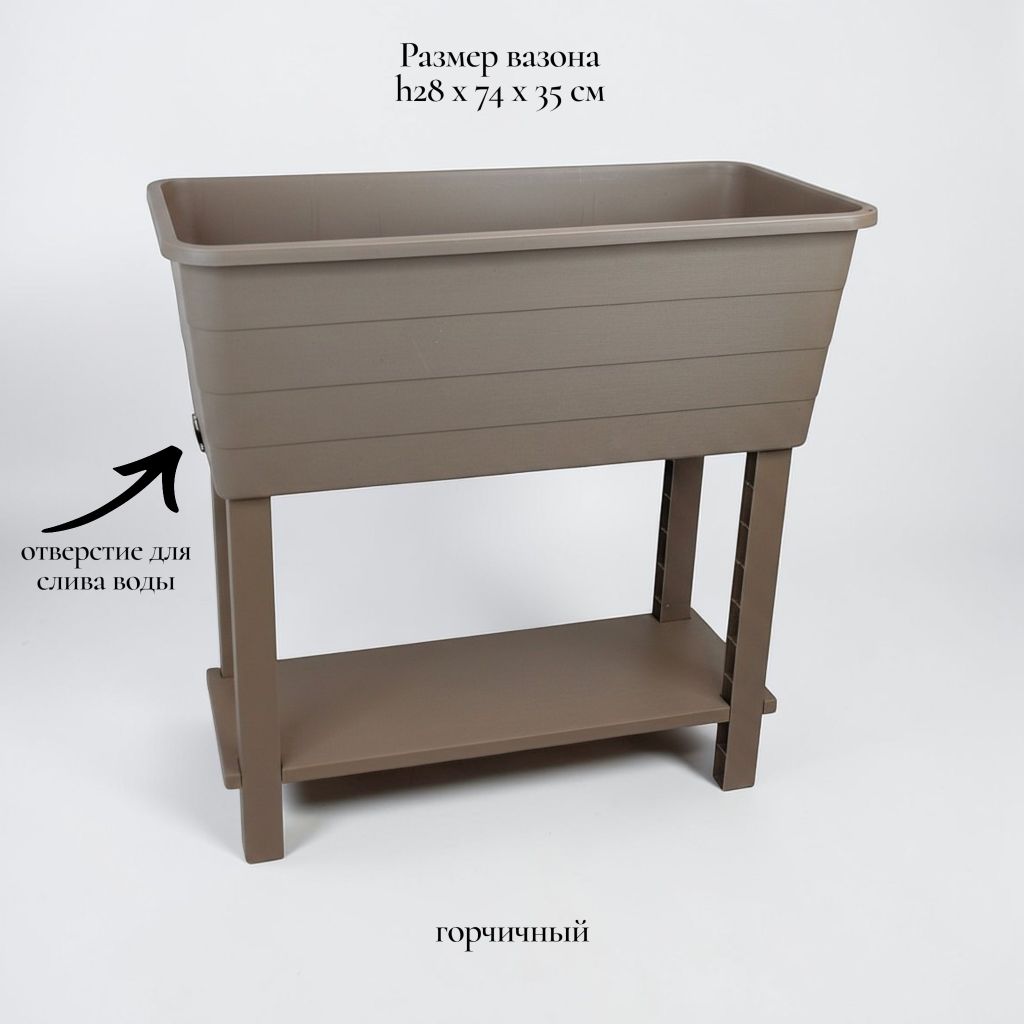 Отзывы о Вазон пластиковый садовый с полочкой на ножках h72 х 74 х 35 см, горчичный, FA57-58