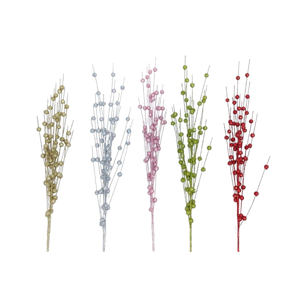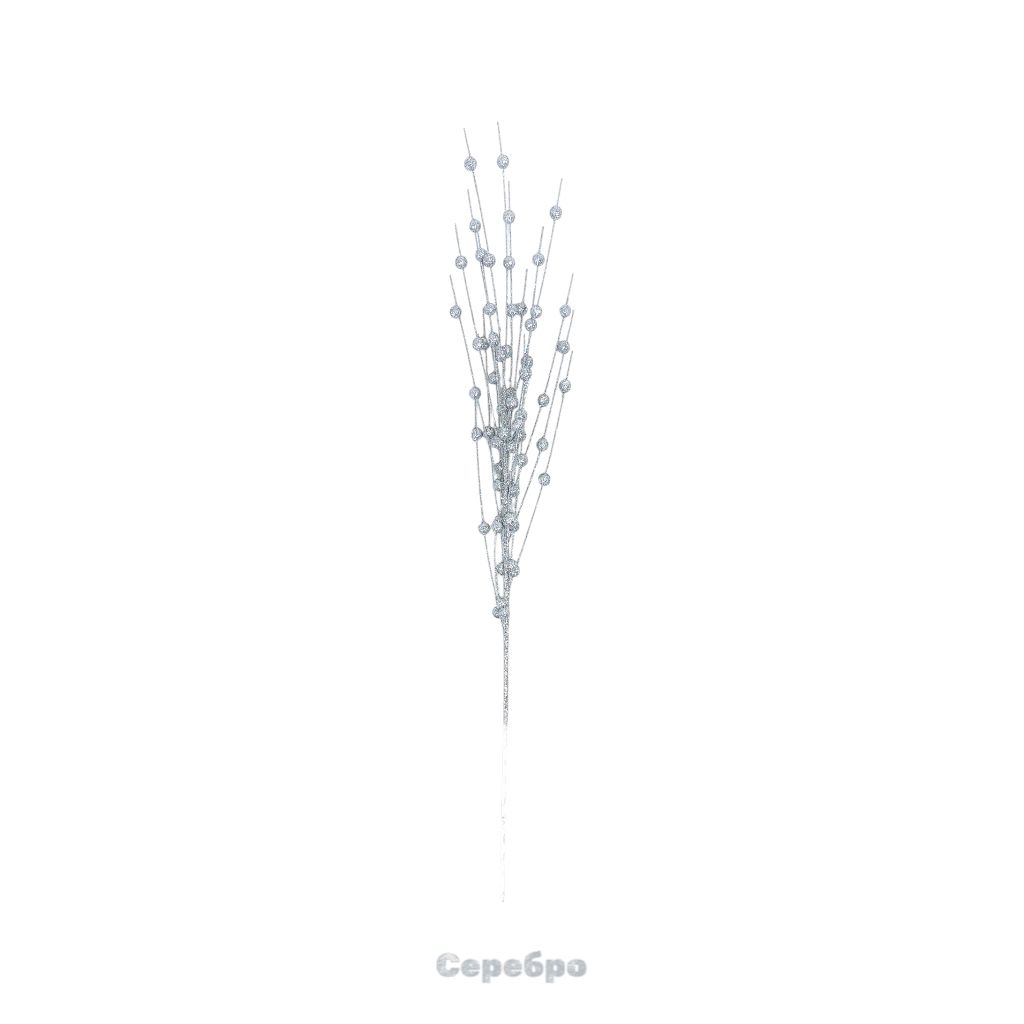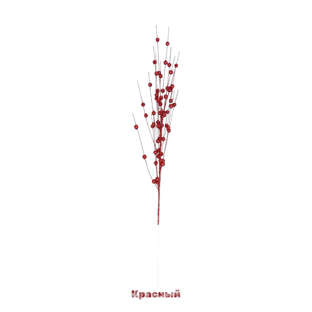 Ветка декоративная с шариками глиттер, h75 см, FA48-37 Выбрать цвет: зеленый, золото, красный, розовый, серебро; описание, фото о товаре.